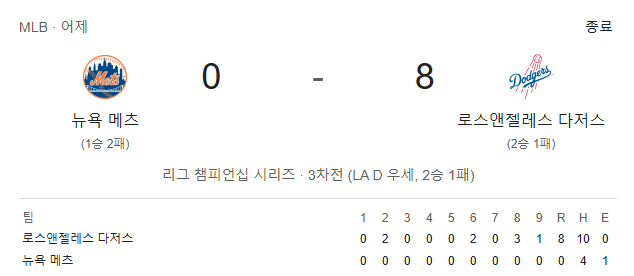 오타니의 홈런 외에도 다저스의 투수진은 큰 역할을 했습니다. 선발 워커 뷸러를 포함한 5명의 투수들이 메츠 타선을 단 4안타로 막아내며 팀의 완봉승을 이끌었습니다. 다저스의 철저한 투구 전략과 오타니의 결정적인 한 방은 팀을 승리로 이끌었고, 이제 다저스는 월드시리즈 진출에 단 2승만을 남겨두고 있습니다.